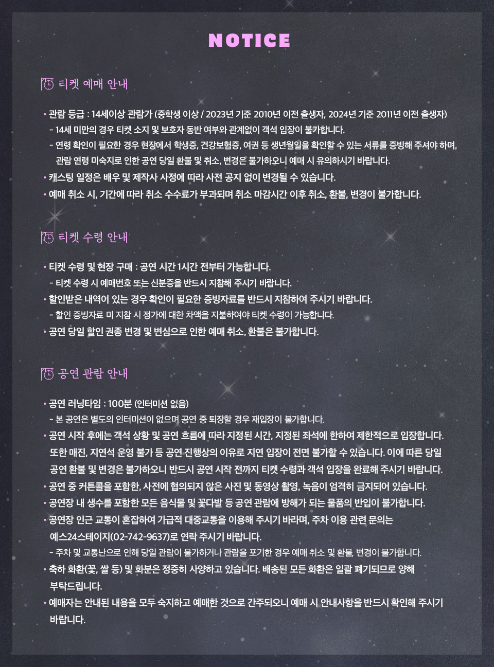 • 본 공연의 티켓 예매는 마감되었습니다.