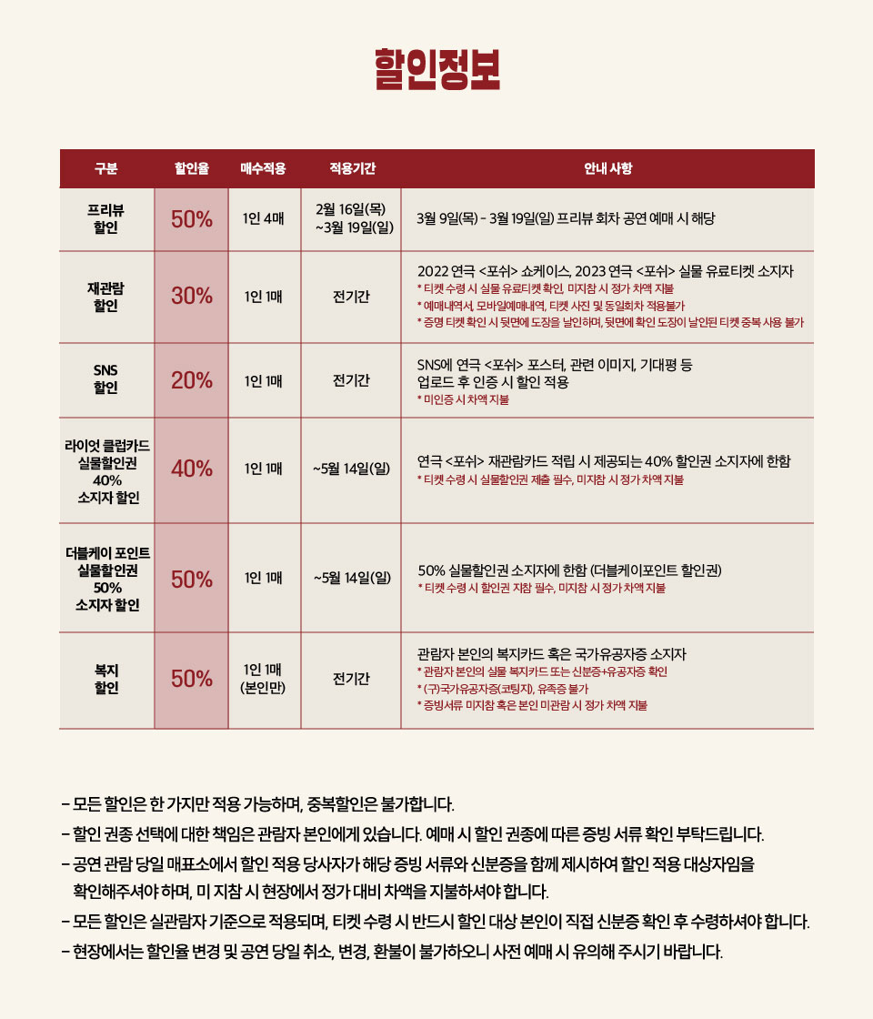• 본 공연의 티켓 예매는 마감되었습니다.